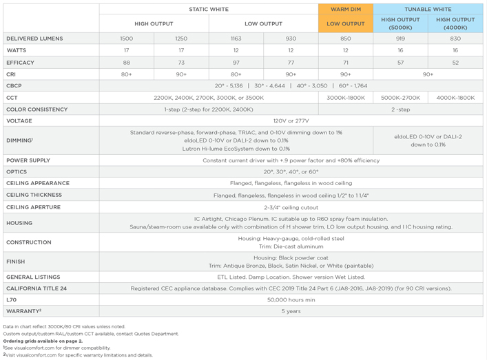 - 2” HIGH-OUTPUT, ADJUSTABLE 40°, TUNABLE WHITE 5000K-2700K, 90 CRI