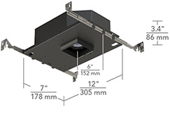Flangeless housings (non-wood ceiling option) include die cast plaster plate with no-fill collar that installs after the ceiling to prevent cracking by unifying the plate, ceiling, and housing. Plaster plate is to be mudded over, directly up to the aperture for seamless appearance.