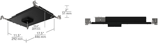 Installing ELEMENT is easy. Product includes butterfly brackets and adjustable steel hangar bars.Flanged trims have minimal thickness.Flangless trims include a crack-resistant plaster plate with no-fill collar that installs after the ceiling to prevent plaster cracking by unifying the plate, ceiling, and housing.Integral gunsights for positioning with laser levels ensure consistent alignment during installation.