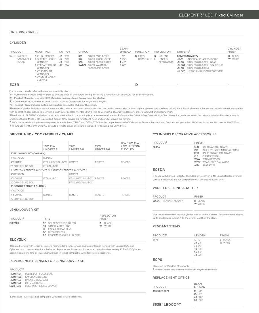 The ELEMENT 3" Fixed Cylinder is designed to provide a premium modern aesthetic and superior lighting performance for a wide range of applications, including residential, hospitality, and commercial spaces. With its sleek design and versatile mounting options, this lighting solution
