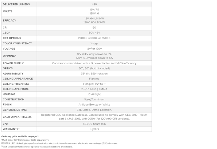 Entra 2" LED Adjustable Niche Lights bring versatile and easy-to-install accent lighting to interior and exterior spaces. Available in both 12V and 120V versions, these units offer adjustable aiming (35º tilt, 359º rotation) in multiple color temperatures, and include both a 30º and 60º lens. Entra 2" LED Niche Lights are ideal for alcoves or built-in shelving, drawing attention to architectural details and improving overall illumination.