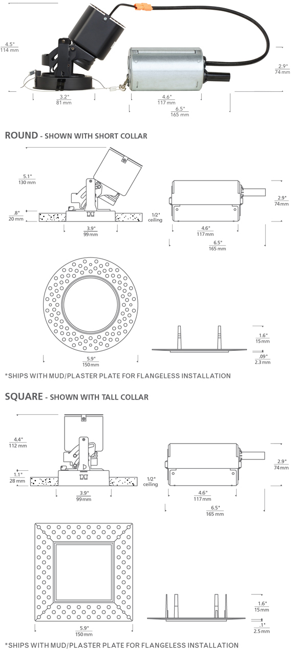 - All housings ship with an optional plaster plate for flangeless applications