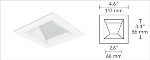 - Entra 3" Square LED 12 Watt, 65° Beam, 3000K, 90 CRI, 0° Tilt