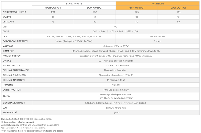 - Available in four color temperatures: 2700K, 3000K, 3500K, or 4000K