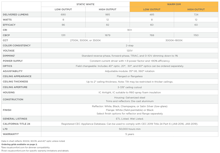 Fixed configurations with Static White or Warm Dim LED modules. A streamlined